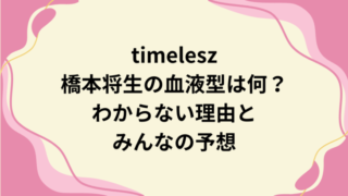 timelesz橋本将生の血液型は何?わからない理由とみんなの予想