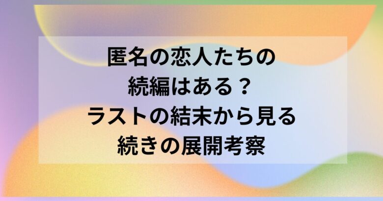 この記事では、『匿名の恋人たち』続編があるのか、制作される可能性はどれくらいなのか、最新情報をもとに解説します!